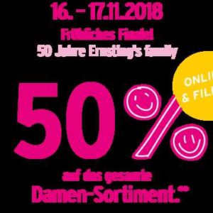 Ernsting’s family 50% auf das gesamte Damensortiment online und Filiale.