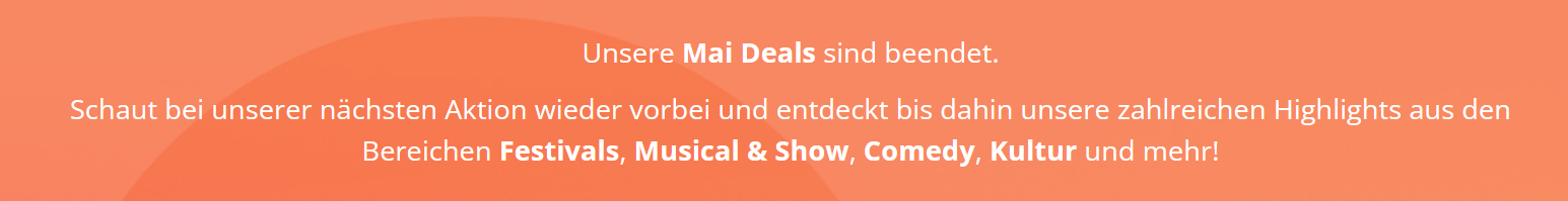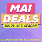 Bei eventim läuft gerade eine richtig coole Aktion! Und zwar bekommt man dort dank der Mai Deals aktuell bis zu 50% Rabatt auf Events! Das heißt, wenn ihr eh schon ein Konzert oder eine andere Show im Blick hattet, ist jetzt vielleicht genau der Zeitpunkt gekommen, um Karten zu kaufen, da man echt eine ganze Menge sparen kann.