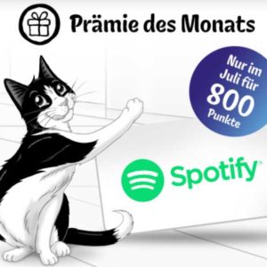 Wenn Ihr und Eure Katze im Felix Club seid und auf Eurem Konto genügend Punkte habt, könnt Ihr aktuell einen Spotify Gutschein vergünstigt für 800 statt für 1.000 Pfoten (Punkte erhalten). Der Versand ist kostenlos.