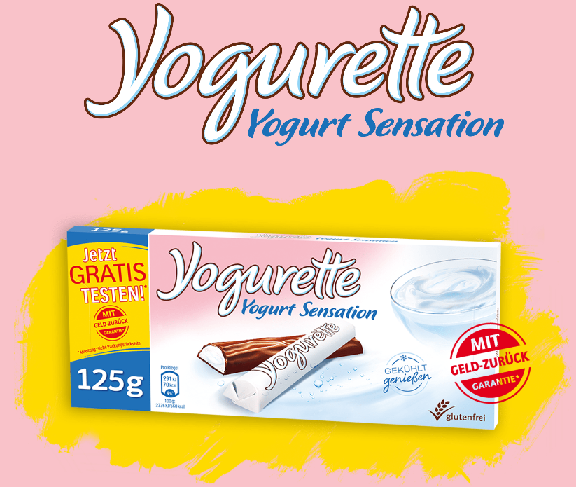 Yogurette Yoghurt Sensation – gratis testen: An der Aktion nimmt die Yogurette Yogurt Sensation 125g Aktionspackung teil.