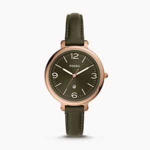 Fossil Uhr Monroe 3-Zeiger-Werk Datum Leder olivgrün + *kostenlose Gravur!* für nur 41,30€ versandkostenfrei statt 119€