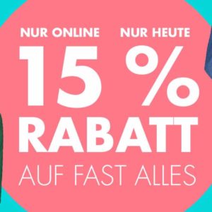 Nur heute, am 23.07.2019, gültig: 15% auf fast alles. Der Rabatt ist bereits am Preis abgezogen und nicht mit anderen Rabatten kombinierbar. Ausgenommen sind Spielwaren und folgende Sortimente und Marken: http://www.galeria-kaufhof.de/svp/.