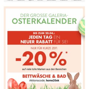 Galeria Kaufhof Osterkalender: 20% auf Bettwäsche und Badartikel