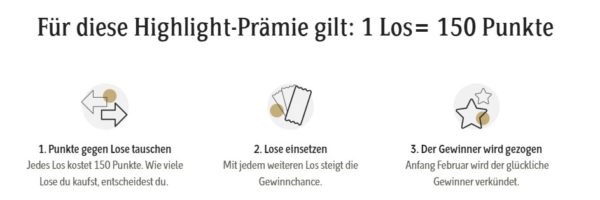 3. Tausche deine Punkte gegen Lose und erhalte die Chance, die begehrte Highlight-Prämie zu gewinnen!