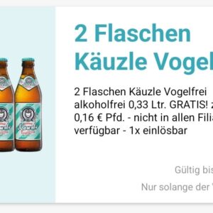 Gratis 2 Flaschen Käuzle Vogelfrei Alkoholfrei in der Logo App