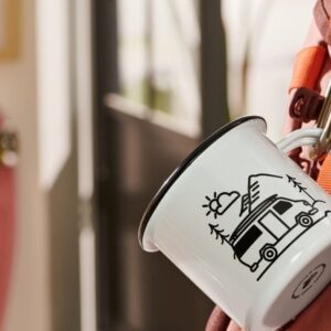 Der Emaille Becher ist perfekt für Ihren morgendlichen Kaffee unterwegs in der Natur. Mit ca. 146g ist er besonders leicht und dank des Materials Emaille bruchsicher und widerstandsfähig. Zusätzlich trägt der Bescher ein liebevoll gestaltetets Camping-Design auf beiden Seiten.