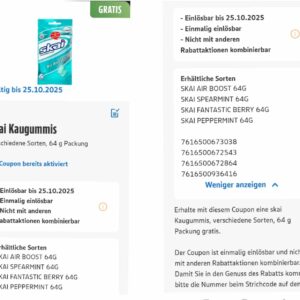 Ob es diesen Gratis-Artikel auch in anderen Regionen gibt weiß ich leider nicht – schreibt dies gerne in den Kommentaren…