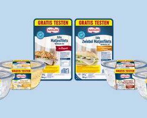 Vom Hersteller Nadler gibt es eine Geld-zurück-Aktion, bei der ihr ein Fisch-Feinkost-Produkt kostenlos testen könnt. Die Aktion gilt für folgende Produkte aus dem Kühlregal: