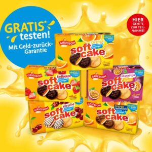 Ihr mögt Griesson Soft Cake oder würdet ihn gern mal probieren? Jetzt habt ihr die Gelegenheit dazu, denn Griesson startet eine neue Gratis-Testen-Aktion, bei der ihr den Kaufpreis für eine Packung Griesson Soft Cake (300g) ganz einfach zurückbekommt.