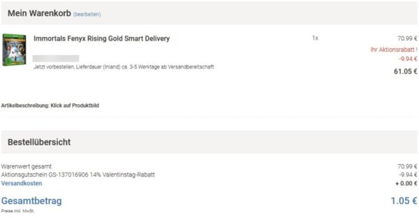 - Im ersten Tab nutzt ihr den Gutscheincode 14VALENTIN21