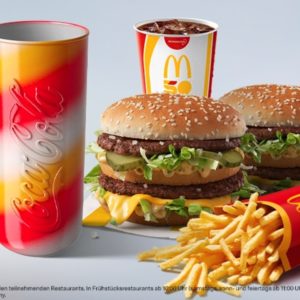 Außerdem bekommt ihr zu jedem Doppelpack-Menü ein „streng limitiertes“ Coca-Cola Jubiläumsglas gratis dazu: