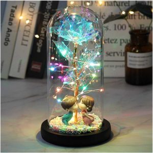 - [Produktmaterial] Die Glaskuppel besteht aus hochwertigem Borosilikatglas, das leicht und transparent ist. Basis besteht aus einem stabilen ABS-Material und ist glatt und abgerundet. Die Rosen sind mit 24 Karat Goldfolie überzogen und exquisiter als echte Rosen. Unverblassende Rosen symbolisieren Ihre ewige Liebe und können ein Leben lang halten. Das LED Band besteht aus hochwertigem flexiblen Kupferdraht, und das LED Band umwickelt die Goldfolie Rose.