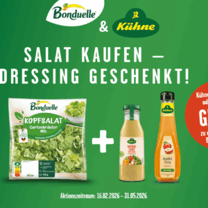 Wenn ihr euch einen Bonduelle Salat holt, erhaltet ihr ein Kühne Dressing gratis dazu.