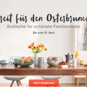 Im Möbel Onlineshop Home24 bekommt ihr bis 15. April 15% Rabatt auf nicht reduzierte Esstische*. Nutzt dazu einfach den Gutscheincode ESSTISCHE15.