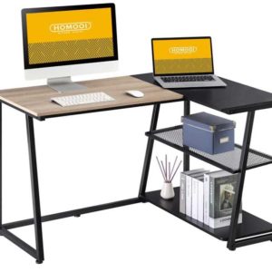 HOMOOI Computertisch mit 2-stufigen Regalen