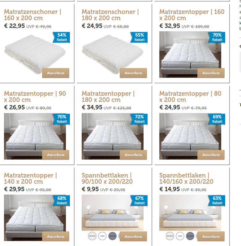 Nur heute erhaltet ihr bei ibood 70% Günstige Vitality Pur Matrazentopper in Verschiedenen Größen ab 24,90+8,95 Versand.