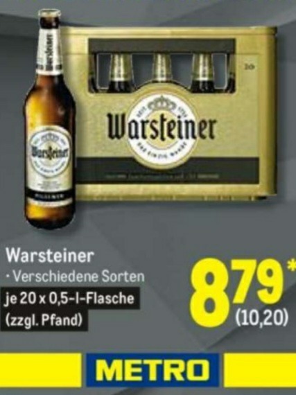 Cappi (Gast) 08.09.2020, 17:57 #Überall wo Getränke gibt,du meintest aber wohl wo Warsteiner am preiswertesten es gibt, das möchte ich auch gerne Wissen. Kaufland jedenfalls nicht. Werbung im Briefkasten für Donnerstag schon bekommen. Nichts drin. Mal sehen wer den ersten Schnapper mitteilt. 😎