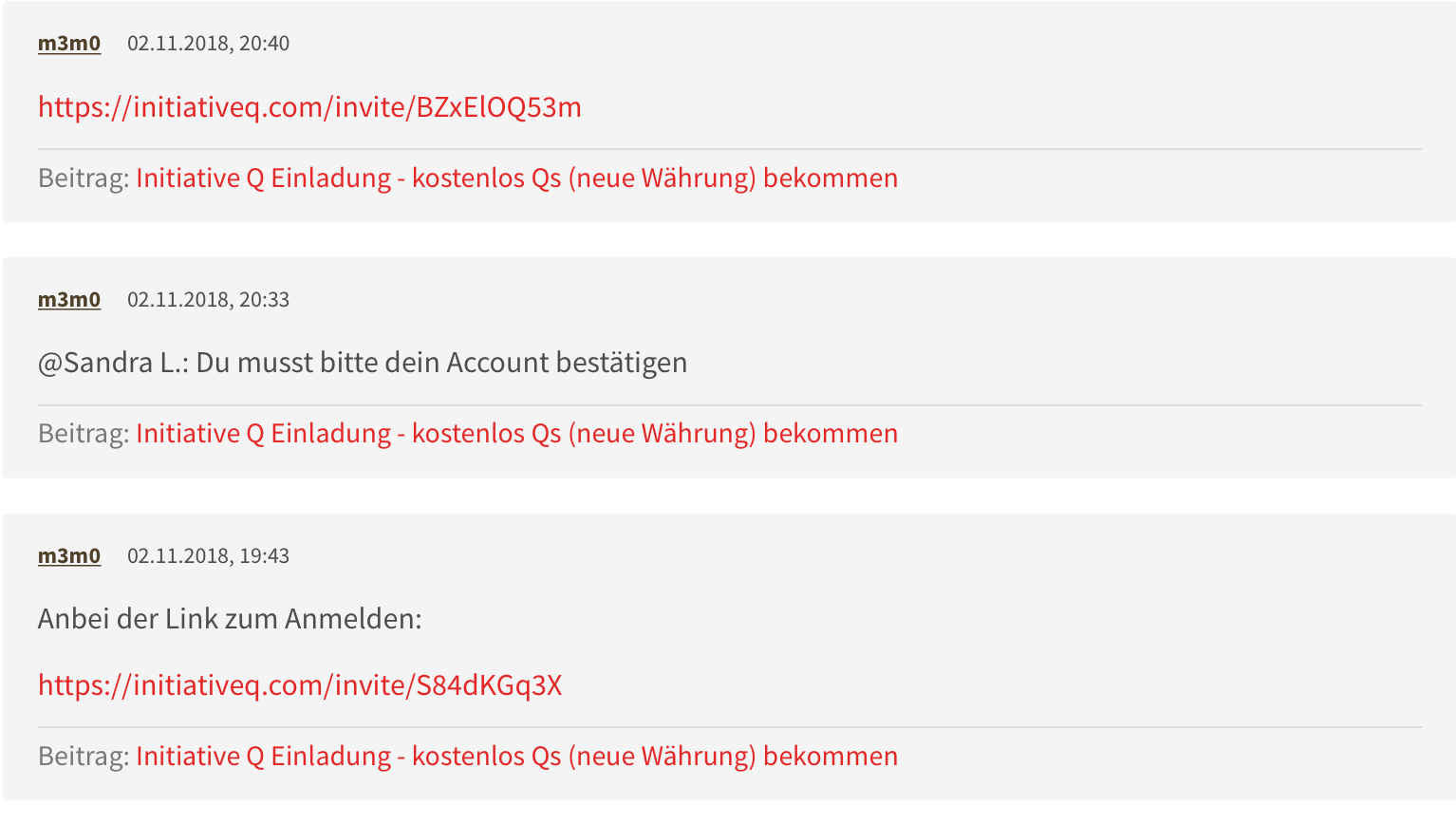 Initiative Q Einladung – kostenlos Qs (neue Währung) bekommen