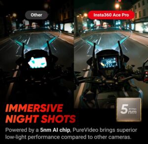 - Erstklassiger 1/1,3″-Sensor und 5 nm-KI-Chip: Ausgestattet mit einem größeren Premium-Sensor fängt die Ace Pro mehr Licht ein, was die Bildqualität enorm verbessert. Die Ace Pro ist zudem die erste Action-Kamera, in der ein 5 nm-KI-Chip verbaut ist, der das Maximum aus dem Sensor herausholt und die Bildhelligkeit in Schwachlichtszenarien mit Rauschunterdrückung aufbessert. All das dank der KI-Leistung.