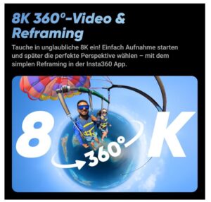 - IMMERSIVE 360°-VIDEOS – Die 8K Kamera der Zukunft. Die Insta360 X4 liefert 360°-Videos in atemberaubenden 8K oder 5,7K 60 fps! Mit dem Active HDR dieser Actionkamera bleiben Farben präzise naturgetreu.