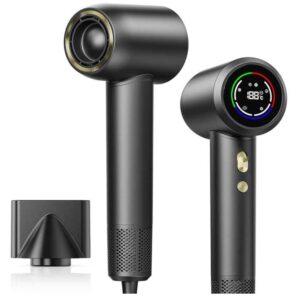 - Leicht und sicher: Das kompakte und stilvolle Design aus robustem ABS- und PC-Material macht den Föhn besonders leicht und langlebig. Die 360° drehbare Magnetdüse sowie der sichere Luftfilter verhindern Haarverheddern und sorgen für eine angenehme Handhabung – perfekt für alle Haartypen und -längen.