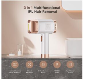 - Dieses laser haarentfernung hat Upgraded 3 Funktion HR/SC/RA, t’s ermöglicht Ihnen, Hautpflegeergebnisse zu erzielen, während Sie Haare entfernen. Das Gerät ist ein Muss für jeden, der sich glatte Haut wünscht. Drücken Sie die Taste, um die 3 Funktion zu wechseln und Bildschirm wird die entsprechenden Funktionen zeigen, wenn Schalter.