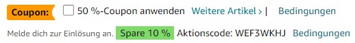 Aktiviert dazu einfach den 50% Coupon auf der Produktseite und nutzt zusätzlich den Gutschein TL6AUE2P und schon kommt ihr auf den angegeben Preis.