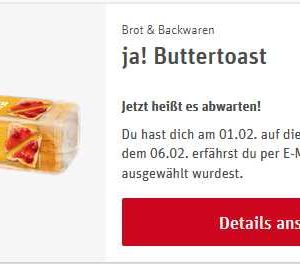Aktuell kann man sich bei Rewe Produkttests den ja! Buttertoast als Tester bewerben.