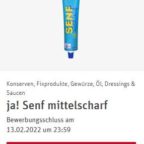 Aktuell kann mann sich bei Rewe Produkttests auf den ja! Senf mittelscharf bewerben