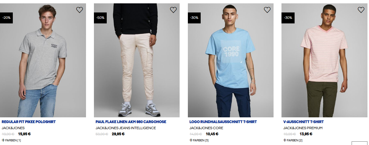 Bei Jack & Jones gibt es derzeit auf ausgewählte Artikel auf alle kategorien einen Rabatt von bis zu 70%