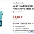 Bei Rakuten bekommt ihr aktuell den After Shave Le Male von Jean Paul Gaultier (125ml) für 38,69€ mit dem Gutschein-Code 10RPG1118. Die Lieferung erfolgt kostenfrei. Laut Idealo liegt der nächste Preis bei über 50,-€.