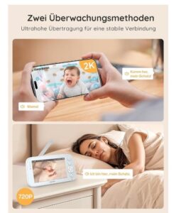 - HD-Upgrade: Mit einem 5-Zoll-HD-Display mit 720p und Fernüberwachung per App (unterstützt 2K-Bildqualität) können Sie mit diesem Babyphone die Bewegungen Ihres Babys jederzeit und überall überwachen. Die klare Nachtsicht ermöglicht auch nachts eine klare, ungehinderte Sicht.