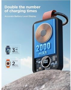 - 2000 mAh AKKUKAPAZITÄT: Lassen Sie nicht zu, dass ein schwacher Akku Ihren Tag einschränkt! Mit einer Kapazität von 2000mAh kann das tragbare kabellose Ladegerät von Joyroom Ihre Apple Watch 3-4 Mal oder Ihre Apple Watch Ultra 2 Mal vollständig aufladen. Erleben Sie eine stressfreie Reise, ohne sich Sorgen zu machen, dass der Akku Ihrer iWatch leer ist. Erfüllen Sie alle Ihre Ladeanforderungen mit unserer verbesserten Batteriekapazität