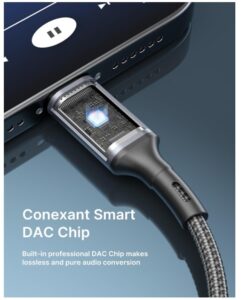 - 【Intelligenter DAC Chip】Das JSAUX USB C auf AUX Kabel 3,5mm verfügt über einen Smart DAC Chip. Es ist ein geringer Stromverbrauch, eine hervorragende und stabile Decodierungsleistung. Der DACC hip kann auch digitale Audiosignale in analoge Audiosignale umwandeln und behält die ursprüngliche Klangqualität Ihrer Kopfhörer bei. Hinweis: Die tatsächliche maximale Audioausgabe hängt vom Headset ab