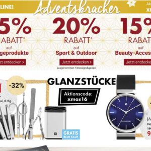 Bei Karstadt bekommt man heute verschiedene Rabatte auf unterschiedliche Kategorien mit dem Aktionscode xmas16: