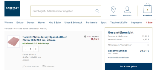 - Geben Sie den Aktionscode home20ok ein und der Rabatt wird abgezogen.