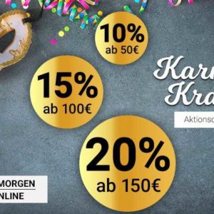 - Den Rabatt erhalten Sie durch Eingabe des Aktionscodes karneval im Warenkorb.