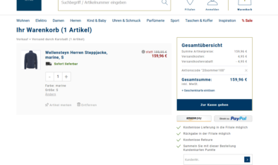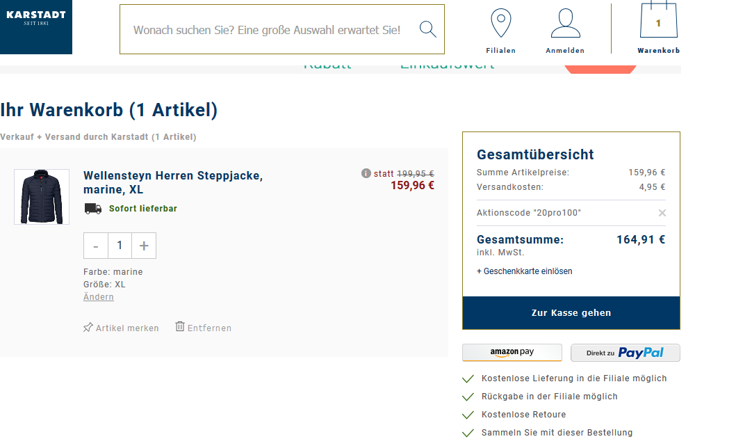 Tayfun 02.06.2019, 11:20 #Screenshot! Wellensteyn Herren Steppjacke mit dem Gutscheincode Warenkorb!