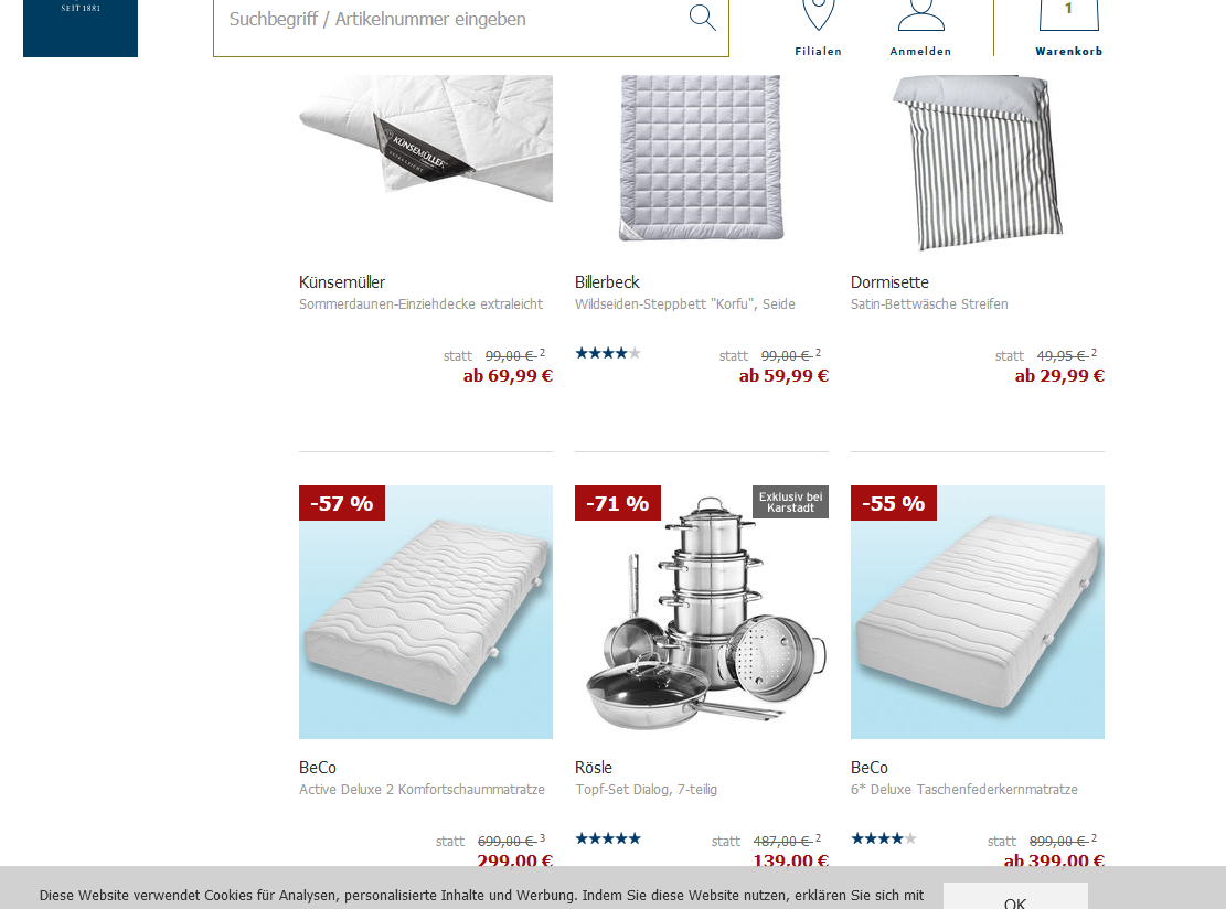 Bei Karstadt Online Late Night Shopping 20% auf fast alles nur bis 24 Uhr.