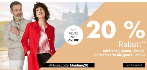 Nur Heute bei Karstadt 20% auf Hosen,Jeans,Jacken und Mäntel.