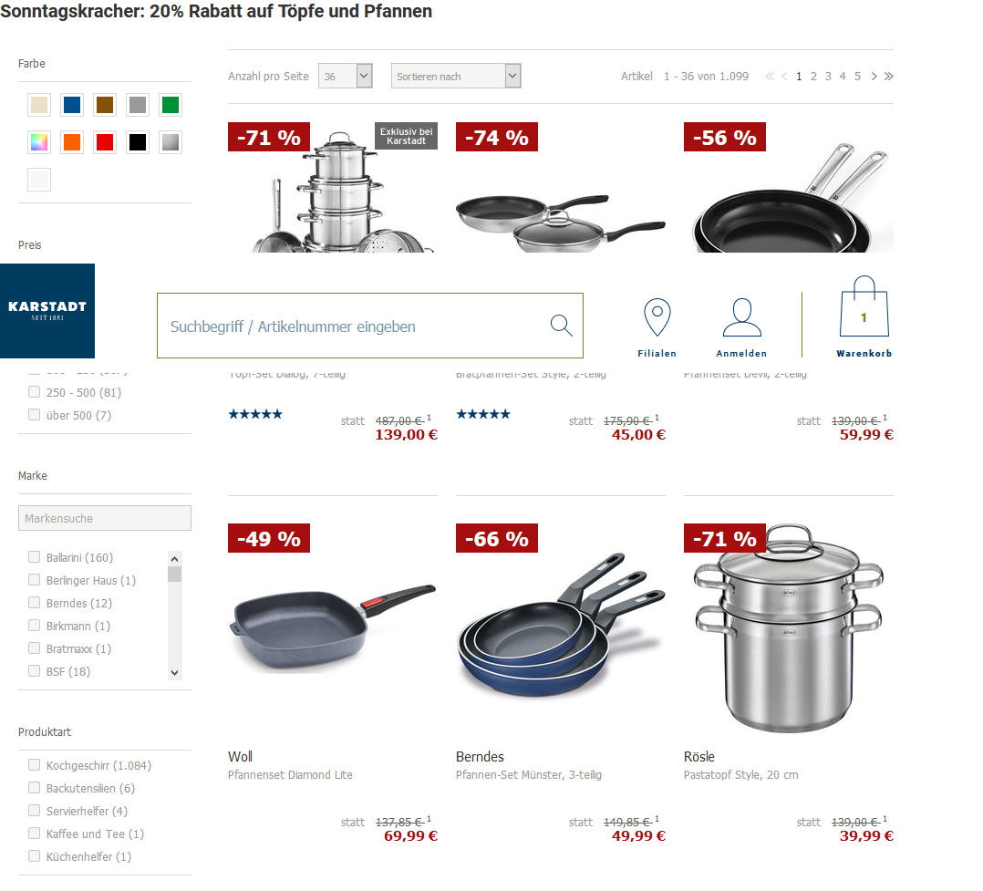 Bei Karstadt Sontagskracher erhaltet ihr 20% auf unten in der Auflistung!