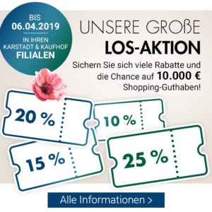 Wer jetzt bis zum 06.04.2019 in einer Kaufhof oder Karstadt-Filiale einkauft, erhält ein Los mit einem garantierten Gewinn.