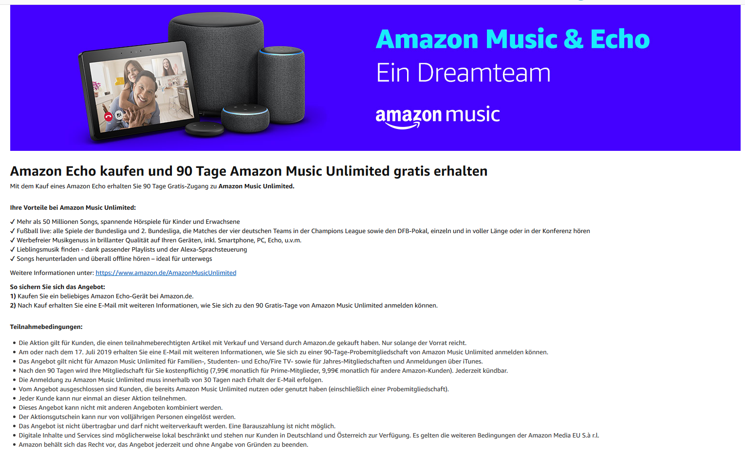 Gast (Gast) 02.07.2019, 21:14 #>>>>Amazon Echo kaufen und 90 Tage Amazon Music Unlimited gratis erhalten<<<