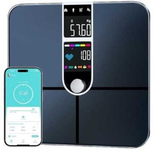 - Großes Farbdisplay: Nach der Verbindung mit der App und der Durchführung der Messungen kann unsere personenwaage mit körperfettanalyse 11 Körperdaten direkt auf dem Farbdisplay anzeigen. Die Daten werden mit Ihrem Smartphone synchronisiert, und in der App können Sie alle 22 Körperdaten einsehen. (Ohne Verbindung zeigt die Waage nur das Gewicht an.)