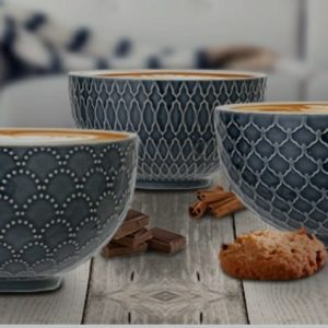 EINE von drei Bowls der Marke Bloomingville in dunkelblau im „Mermaid Design“, „Nordic Design“ oder „Wave Design“.