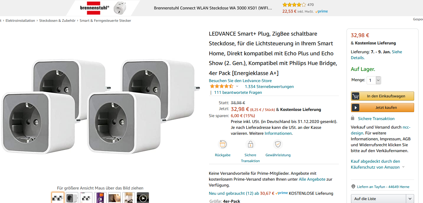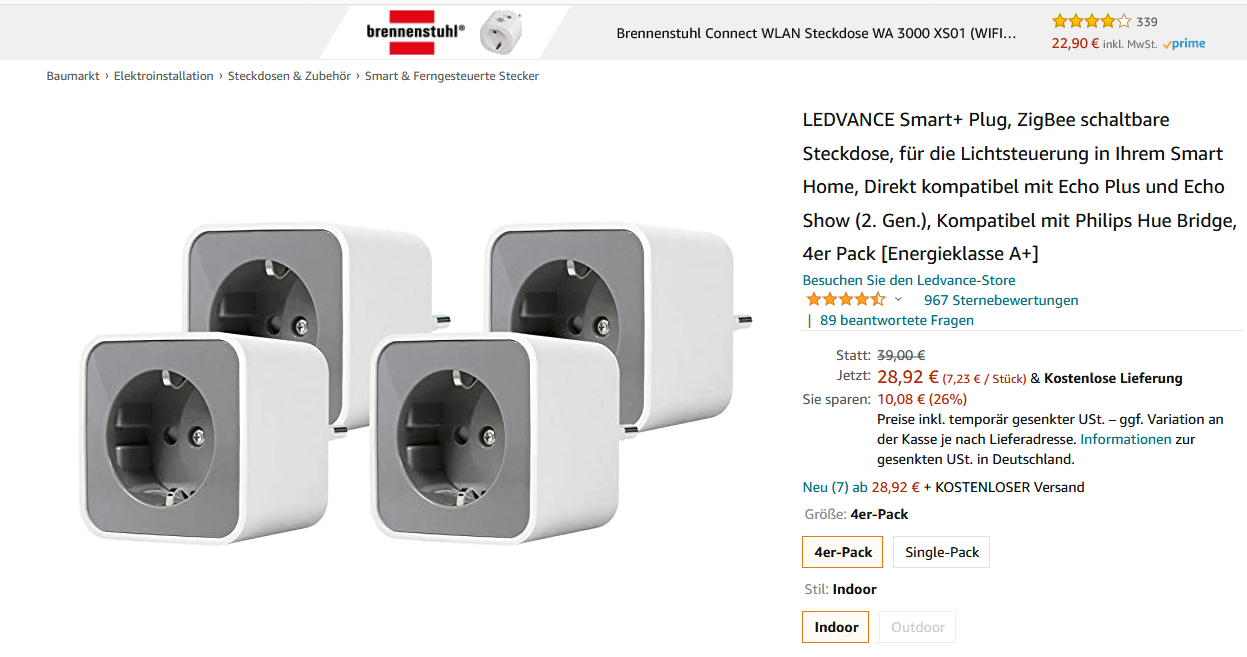 Bei Amazon bekommt ih heute die LEDVANCE Smart+ Plug, ZigBee schaltbare Steckdose für nur 44,99 € inkl. Versand.