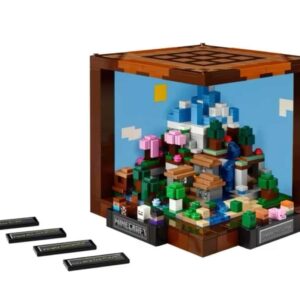 Feiere das 15-jährige Jubiläum von Minecraft® mit diesem LEGO® Set, das eigens für erwachsene Spieler des beliebten Videospiels entwickelt wurde. Das Modell eines offenen Würfels stellt die legendäre Werkbank dar, in die 8 Mikrofiguren und 5 Mini-Modelle aus 12 Minecraft-Biomen integriert sind. Man kann die Mini-Modelle und die Figuren abnehmen, um das Hauptmodell ganz variabel zu gestalten.