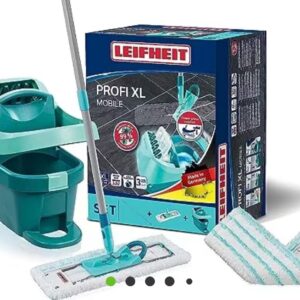 Leifheit Wischtuchpresse mit Bodenwischer und Rollen inklusive Ersatzbezug – zum schnellen Reinigen großer FlächenWenn der Boden gewischt werden muss, ist das oft mit Schwierigkeiten verbunden: Das andauernde Bücken ist anstrengend und die Hände sind ständig im Schmutzwasser. Mit dem Leifheit Set Wischtuchpresse Profi XL mit Rollen, das aus dem Eimer Profi mit Presseinsatz und Rollen und dem Bodenwischer Profi XL micro duo inklusive einem Ersatzbezug besteht, ist das Putzen ganz ohne Bücken und mit trockenen Händen möglich. Durch die große Fläche des Wischers ist auch das Reinigen großer Flächen kein Problem und mit dem praktischen Rollen kann der im Set enthaltene Eimer leicht durch den Raum geschoben werden.Die Produktvorteile im ÜberblickSet inkl. Wischtuchpresse Profi XL mit Rollen und Bodenwischer Profi XL micro duo mit 3-teiligem Stiel plus einem ErsatzbezugAuspressen ohne Kraftaufwand durch komfortable FußbedienungInklusive integrierter RollenWischen ganz ohne Bücken möglich360° Drehgelenk zum Reinigen in SchlangenlinienMit flach abwinkelbarem Gelenk für die Reinigung unter Schränken oder BettenRundumwischbezug reinigt Ecken und Fußleisten in einem Schritt mitWischbreite 42 cm