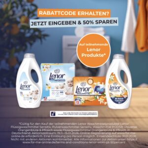 Wer ohnehin zu Lenor greift oder die Marke einmal ausprobieren möchte, kann sich jetzt einen Teil des Kaufpreises zurückholen. Im Rahmen der aktuellen Cashback-Aktion werden ausgewählte Lenor-Waschmittel mit 50 % des Kaufpreises erstattet. Die Teilnahme erfolgt online und ist auf einen Kauf begrenzt, wodurch die Aktion übersichtlich und fair bleibt. Erstattet wird der tatsächlich gezahlte Preis nach Prüfung per SEPA-Überweisung. Wichtig ist, dass Kaufbeleg und Produkt gut dokumentiert werden. Die Aktion richtet sich an Endverbraucher in Deutschland.