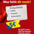 Lidl: Adventskalender (23.12.) 5 € Coupon (MEW 50 €)